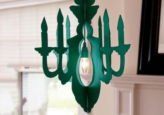 A cardboard chandelier is way more original and budget friendly than a crystal one.