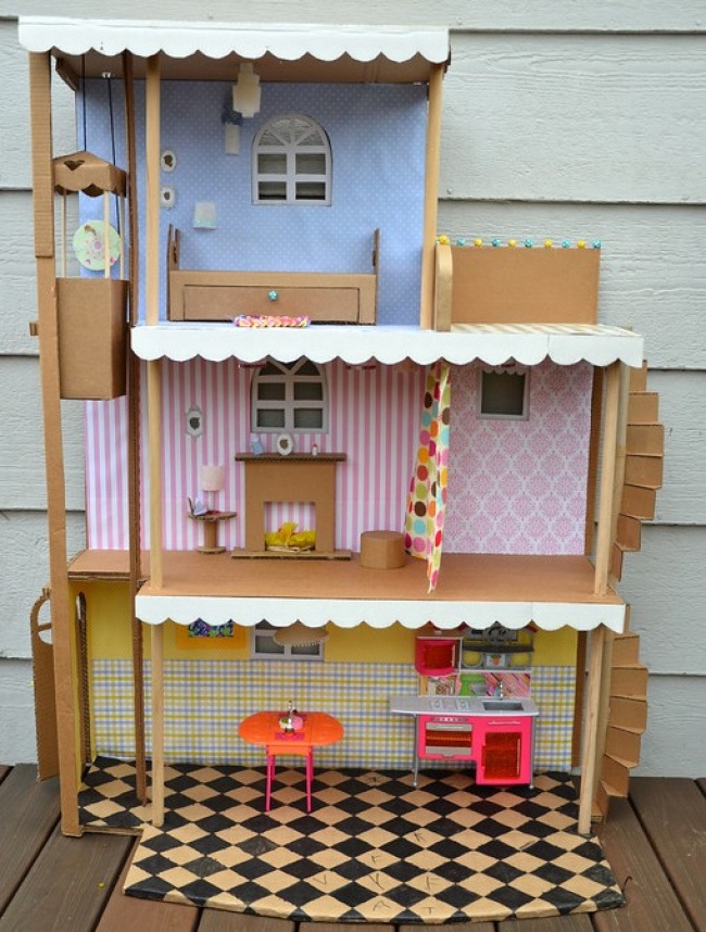 Make your little daughter’s dream come true by constructing this amazing dollhouse from boxes.