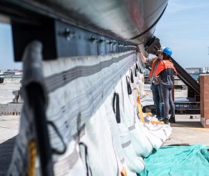“The assembly is going on really well. The first segment, which is 120meterss [long] has been put together and will be towed out for a tow-test in the [San Francisco] Bay area next week,” Spokesperson Erika Traskvik said.