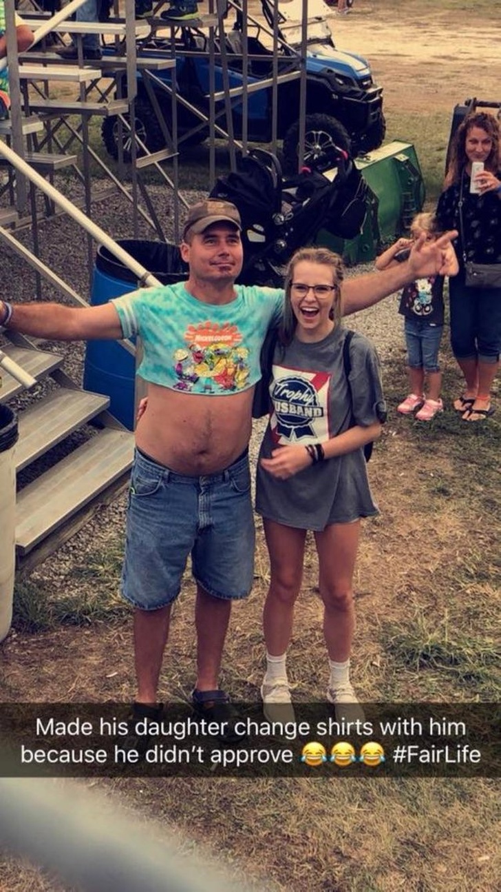 18. Este pai não aprovou a camisa de sua filha, então trocou a sua com ela