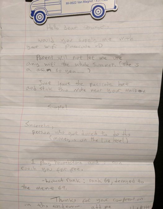 If you ever ground your kids from the Internet, you may want to make sure they’re not trying to buddy up to your neighbors. Kids are wily.