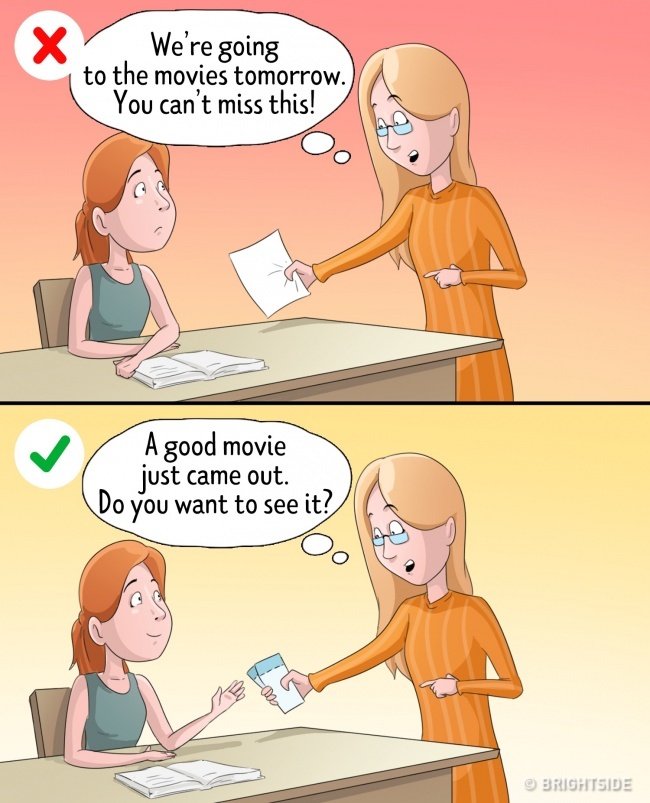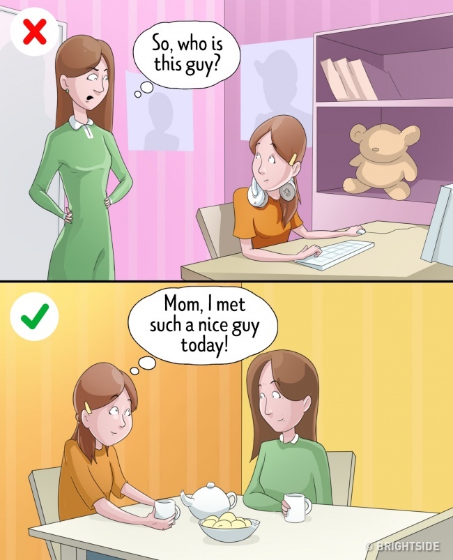 This is especially true for the parents of teenagers. Kids have their own friends and first dates. It is normal and absolutely natural. An interrogation of “Who is that guy?” will only make your child annoyed. Many children will share such personal things with their parents if they feel safe.