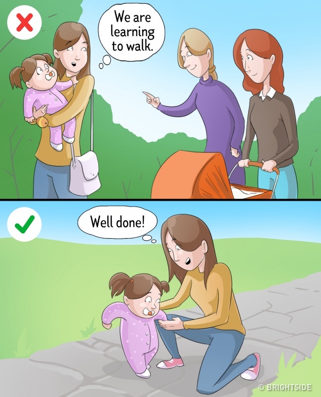 Caring “Insta-mothers” post a lot of pictures and write, “We have eaten!” “We have started to walk!” and so on. Of course, they support their children a lot, but still, these are not the mothers’ successes —they are the children’s! Who is “we”?