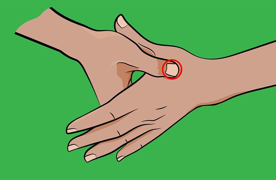 This point rests between your thumb and index finger. It can help relieve toothaches, neck pain, shoulder pain, and headaches. Massage into the groove for a full minute.
