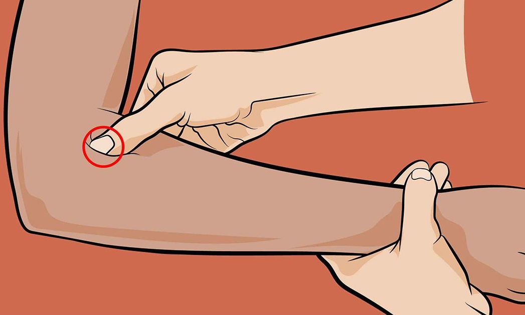 This point is found inside the crease of a bent elbow. Relieving pressure here can help support the immune system, which means it also helps to reduce hay fever, sore throats, and other sicknesses. Press into the point with your thumb, and stay there for a minute. Make sure to relieve pressure in both arms, and repeat if necessary.