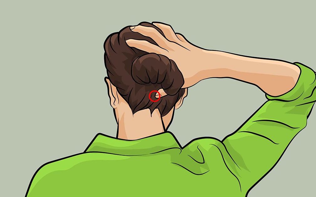 This point is located in the center of the back of your head, right at the bottom of the skull. Relief here can help with headaches, sore throats, and nosebleeds. All you have to do is firmly press into the point with your fingertips for at least two minutes.