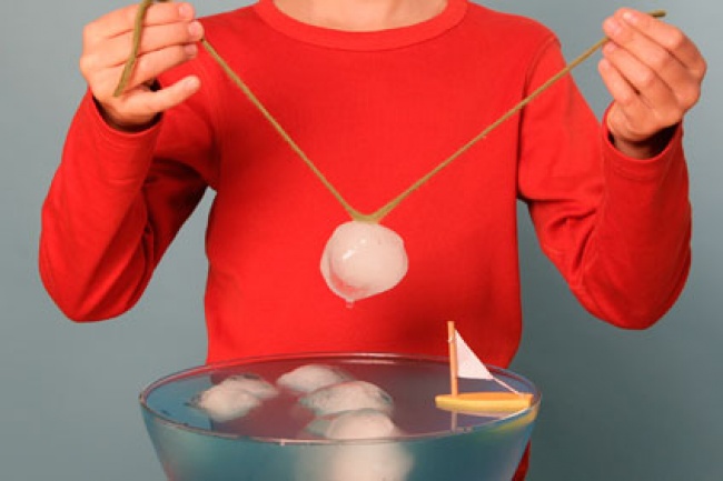 The experiment: Put an ice cube in the bowl of water. Place the thread halfway in the water so that one end lies on an ice cube and the other end hangs outside the bowl. Pour a little salt on the cube ice and wait 5-10 minutes. Then take the other end of the thread and pull the ice cube out.