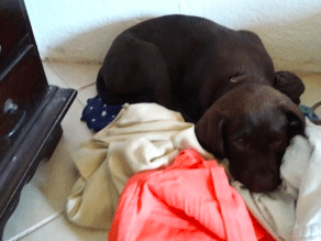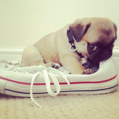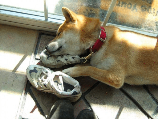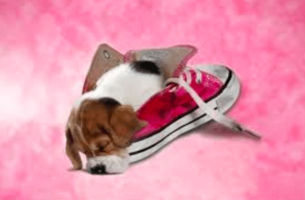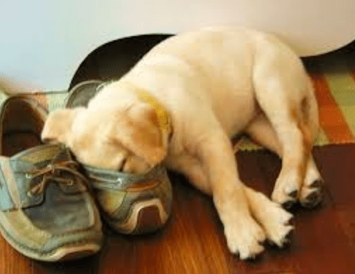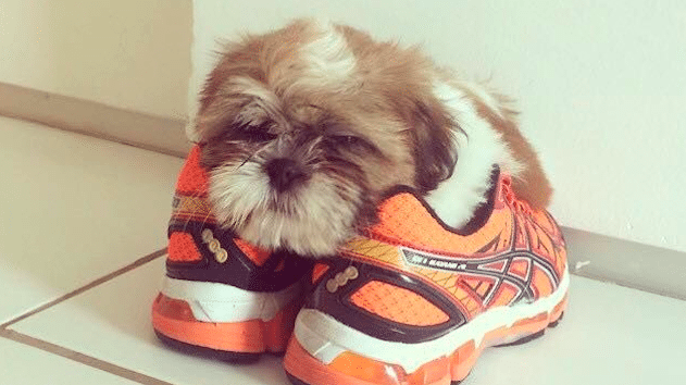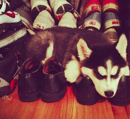 This puppy couldn’t decide which shoe to sleep on, so he took both of them. How cute! His owner will be in for a real surprise when he goes to take his morning run.