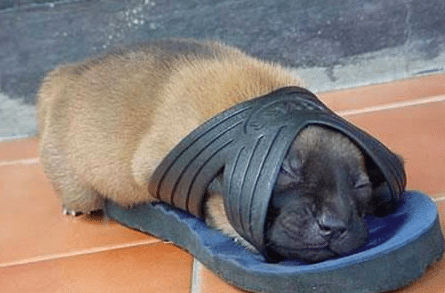 This puppy thought a sandal would make the perfect spot for a nap. Good thing it isn’t a flip flop! The toe strap would be so uncomfortable pressed against his tiny face.
