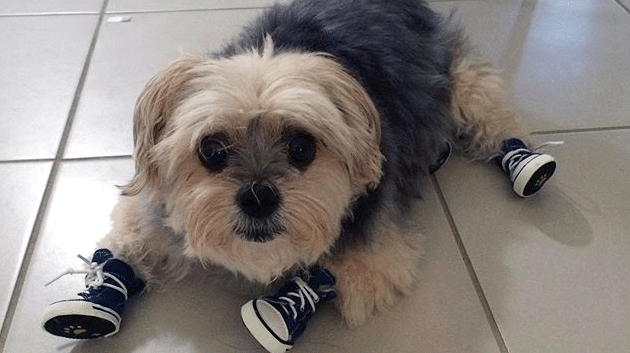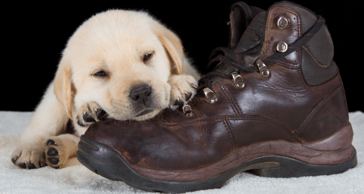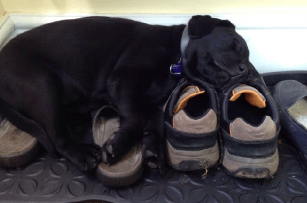 This pup has taken over all the shoes. Now he can have attention and prevent his owners from leaving him – all at the same time. Talk about killing two birds with one stone.