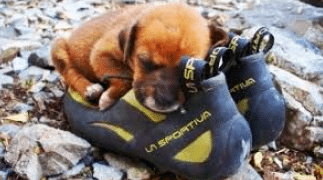 This little puppy thought if he laid on his owners shoes, there was no way he could get left behind. Plus, they make a great cushion from all the rocks. It’s a win-win.