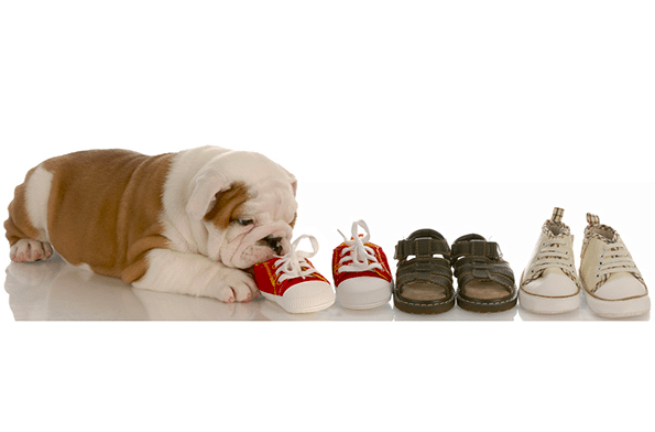 Maybe you can’t wait to take your work shoes off at the end of the day, but this little guy doesn’t mind. He can’t wait to get his paws on them.
