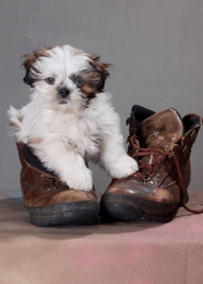 This fuzzy little fellow looks so adorable standing on his shoes. It is almost like he is afraid to touch the floor. Such a cutie.