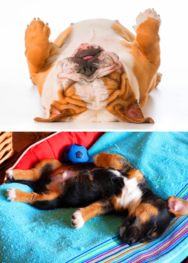 This is the most relaxed sleeping position among dogs: the belly and the throat stay unprotected, and these are the most vulnerable parts of the body. If a pet sleeps on its back, it means that it fully trusts you and feels comfortable with you. But it may also mean that the dog is hot or it got really tired during the day. If your dog chooses this position often, it means that it feels confident and adapts to different conditions easily.