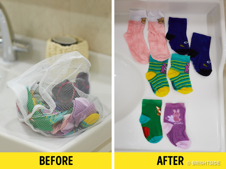 In order not to lose socks while washing them, put them in a bag. You can make one yourself, but some people use the bags that come in shoe boxes. You can wash the bag of socks together with the rest of your clothes. This will make it harder to lose them.