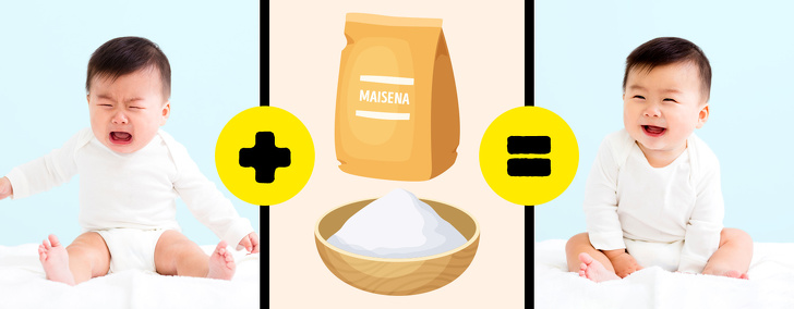 Você sabia que o talco de bebê é feito de amido de milho? Agora você pode fazer isso por conta própria. Se acabar o creme ou o talco de bebê, simplesmente polvilhe um pouco de amido de milho na área da fralda.