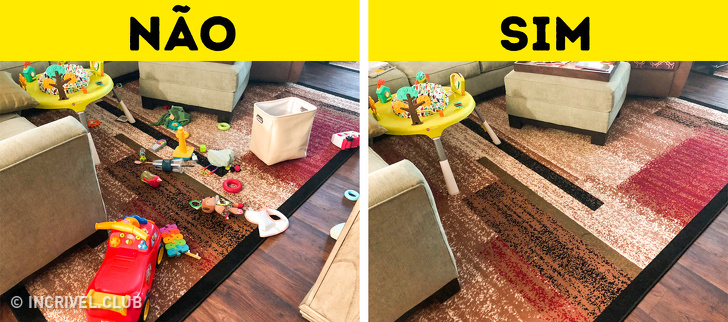 O desastre que aparece em toda parte quando você tem um pequeno pode ser indescritível e incrível. Para não se sentir sobrecarregada ao tentar limpá-lo à noite, limpe um pouco toda vez que trocar de cômodo durante o dia.