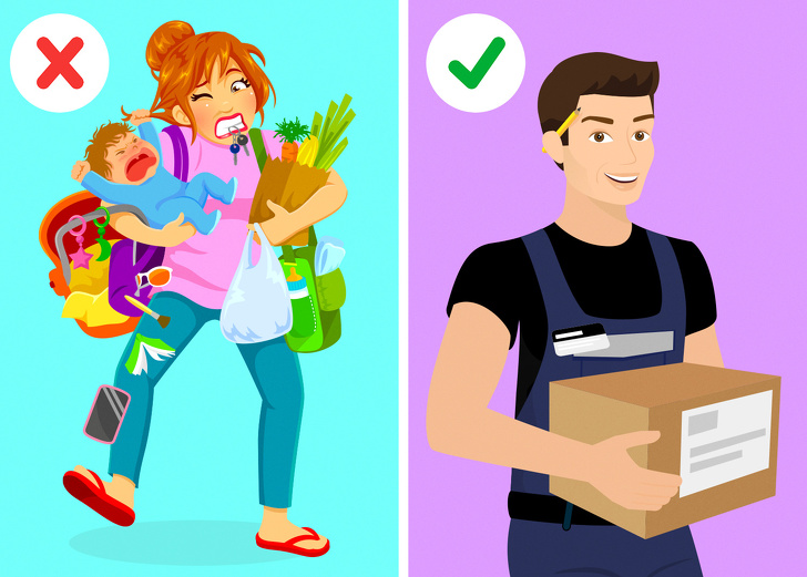 Ter um bebê é estressante por si só, então você provavelmente quer eliminar quaisquer fatores adicionais que possam piorar ainda mais. Portanto, tente obter as coisas que precisa através de outra pessoa, isto é, entregas em domicílio. Mantimentos, roupas, produtos para bebês, o que for! Assim você também terá mais tempo para passar com o seu pequeno.