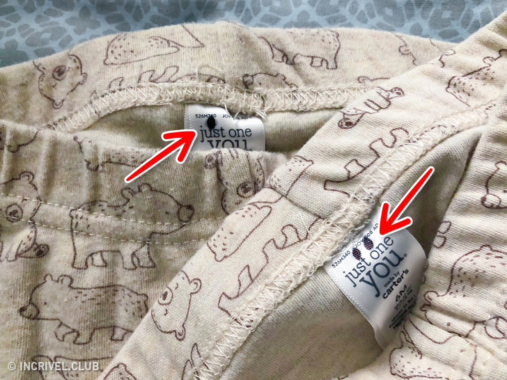 Se você tem filhos do mesmo sexo, para não misturar suas roupas, caso eles tenham peças iguais, marque um ponto na etiqueta para uma das crianças e dois pontos na etiqueta para a outra.