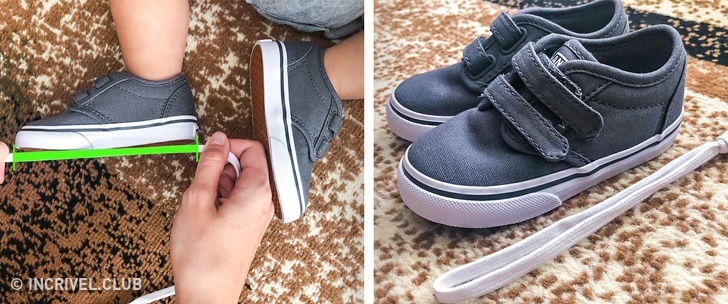 Comprar sapatos para as crianças sem levá-los para experimentar realmente pode ser uma experiência difícil. Para facilitar as coisas, meça o tamanho do pé do seu filho com um cadarço, amarre-o e coloque-o no bolso. Desta forma, a medida estará sempre com você nessas compras de última hora, mesmo que seu filho não esteja junto.