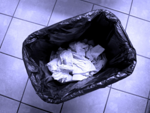 If your trash smells intolerable, soak some Listerine into a paper towel and throw it away. The smell will overpower that yucky trash smell.