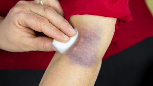 Don’t worry, that bruise won’t be there forever. To help it heal faster, soak a cotton ball in Listerine and hold it on the bruise. This will encourage more blood to flow, and soon that bruise will be gone.