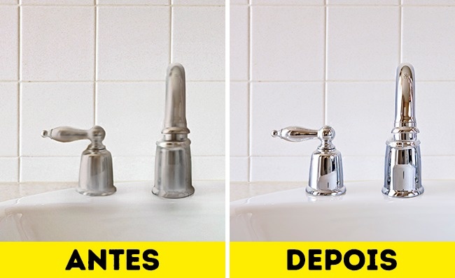 Para fazer as torneiras brilharem, aplique uma pequena quantidade de pasta de dente nelas e limpe-as com um pano.
