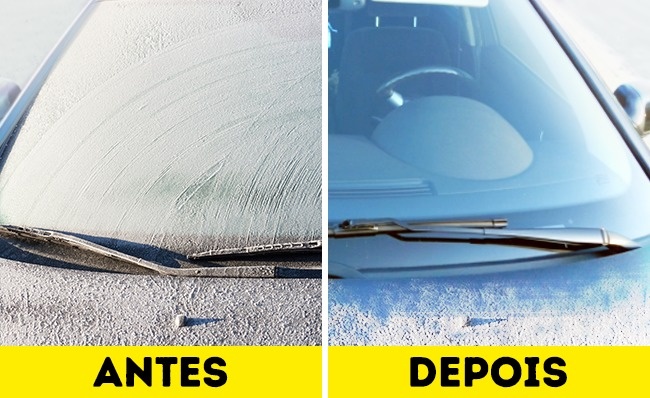 Durante o inverno, quem mora em regiões muito frias pode usar vinagre de maçã ou branco para evitar que o para-brisa e as janelas do carro congelem. Basta esfregar os vidros com uma solução de vinagre e água na proporção de 3 para 1.