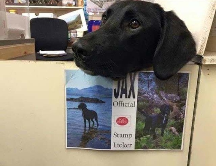 22. “Meet Jax. He’s the Official Stamp Licker at the post office in the village of Portree, Scotland.”