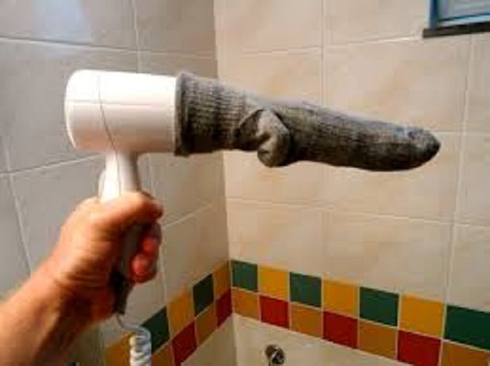 You can even use blow dryers to stretch shoes that are too tight. It only takes a few minutes. All you have to do is pop your shoes on over a pair of thick socks and blast the hairdryer on hot. The material will soften and stretch, giving your feet more room to breathe.