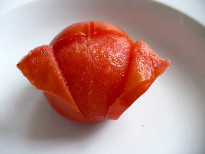 If you have bushels of tomatoes or peaches to peel, the fastest way will be to soak them in boiling water for 30 seconds. But if you have only a few to peel, just use your microwave!